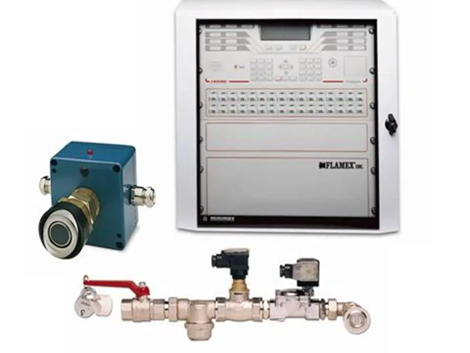 When a flame, spark or ember is detected by the system, the extinguishing nozzles deploy a fine mist of water, eliminating the hazard, protecting life and property, and averting a shutdown of production. Flame and spark systems are most often used in combination with other dust control measures to ensure compliance with prevailing NFPA standards. AES provides a full range of flame, spark and explosion control products to keep your pneumatic conveyance system safe and compliant.