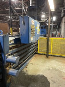 This Balemaster model #EO-1275 with automatic wire tier is ideal for warehouse or distribution center applications. The baler will produce a 44” wide x 30” high x variable length bale that weighs between 1,500 – 2,000 lbs., depending on the material. It is equipped with an 8” diameter main ram cylinder that exerts 150,840 pounds of force at 3,000 PSI hydraulic system pressure. This baler comes with a feed chute opening of 40 1/2” x 60”. The 30 Hp motor with hydraulic regeneration moves the ram very quickly at 17.0 seconds for a complete ram cycle. This baler has a no-load rated capacity of 12,750 cubic ft./hr.
