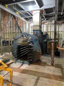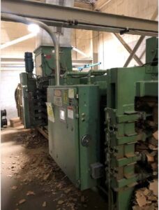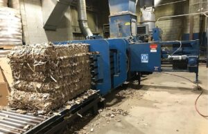This BACE model V63OCC will produce a 60″ wide by 30″ high x 48” that weighs between 500 and 1000 lbs., depending on material. It is equipped with a 6” diameter main ram cylinder that exerts 60,000 pounds of force at 2000 PSI hydraulic system pressure. This baler has a 42” bore stroke. and a semi-Automatic ejector. The 10Hp motor moves the ram at 49 seconds for a complete ram cycle.