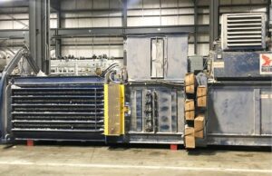 This baler will produce a 30” x 36” x variable length bale that weighs between 1,300 and 1,700 Lbs. depending on the material. It is equipped with an 8” diameter hydraulic cylinder that exerts 150,900 Lbs. of compressing force at 3,000 PSI hydraulic operating pressure. The 30HP motor and regenerative hydraulic circuit create a 15 second no load cycle time. Normal operating displacement of 5,600 cf/hr.