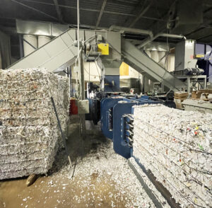 This baler will produce a 44” x 43” x variable length bale that weighs between 1,200 and 1,600 Lbs. depending on the material. It is equipped with an 8” diameter hydraulic cylinder that exerts 125,664 Lbs. of compressing force at 2,500 PSI hydraulic operating pressure. The 30HP motor and regenerative hydraulic circuit create a 14.2 second no load cycle time. Normal operating displacement of 15,650 cf/hr.